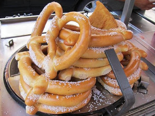 SLEEPING ON THE JOBSo how did these soft bracella, pretiola, bretzel/ pretzels became the crisp, crunchy snack we've grown accustomed to? Ah, there's a story for that as well. We're told that a young apprentice baker dozed off while tending the oven while the pretzels were baking. The oven fire began to die out, and, when he awoke, he noticed and immediately stoked the oven. The result was that he over-baked the pretzels. At first the master baker was upset, but when he discovered how good the hard pretzels were he relented.