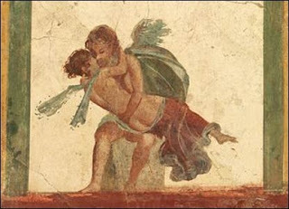 STUPID CUPID Somewhere along the line the cherubic Cupid entered the scene. Ask most people about Cupid and they're apt to describe a cute, chubby cherub with wings and a bow. Cupid is, of course, a Roman God adapted from the Greek, Eros. In both cases they are winged entities and usually represented carrying a bow and arrows with which they inflict the sting of love. However, they were always depicted as virile young men rather than plump little babies. How and why this pagan God invaded the celebration of St. Valentine's Feast Day is unclear. What is clear that this cutesy character first appeared in Victorian times and, like Santa Claus, found a place in the collective imagination.