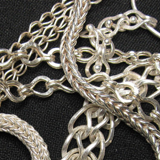 SILVER IN JEWELRYSilver jewelry, often set with gemstones, has been worn for personal adornment by people of all cultures since ancient times. Glass and stone beads were often strung on silver wire to make necklaces, bracelets and anklets. Silver was also made into rings and earrings. Decorative objects made of silver castings were popular in higher class homes in that era.