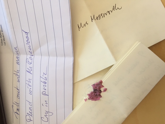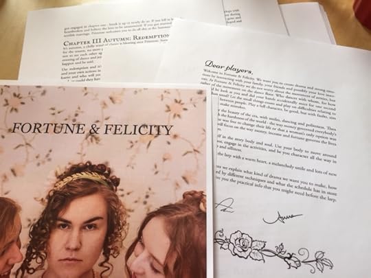 Green is the colour of the Mossworths so it was good to wear, made us easy to identify as a family. Another grouping is the romance set, this consist of of players from different families whose intrigues are entangled in different ways and stories that tend to play off one another. Every romance group has a motto. Esther Mossworth belongs to a group whose motto is “All is fair in love and business”.Before the LARP begins both family groups and romance groups meet in workshops. This is to get to know each other and help each others’ play along. These workshops are repeated between the three acts that make up the LARP as a whole. This makes Fortune and Felicity a transparent LARP, there are other kinds. This transparency means all the players in my family and romance group knows each other's full backstories e.g. that my mother bribed a young woman to seduce my fiancé all those years ago. This means they can all support me (and others involved) in reacting to this and creating drama around it. The players know but their characters don’t of course. Until they do, shock, shock, horror, horror.