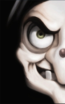 Okay, just got back for the NCTE/ALAN Workshops at Disney World, which my awesome publisher, Holiday House, was kind enough to send me to! It was a wonderful conference, not to mention a great Thanksgiving vacation for my family! Oh, and when I presented to the 300+ educators on Tuesday they actually laughed at my jokes! Phew! I was so nervous, expecting nothing but tumbleweeds and rotten tomatoes! What a relief!So, in my many travels through Disney World a book kept catching my eye. The cover was to die for, the Wicked Queen from Snow White. The book is called Fairest of All: A Tale of the Wicked Queen, a fractured fairytale (very hot genre right now) by Serena Valentino. I just started reading it last night. Long story short, I had to share this uber cool cover with you. On the dust jacket, the evil, yet beautiful Queen. Remove the dust jacket and here's what you get! GAH! Quite a shocker!