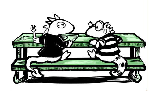 Chuck's friends and classmates were more of a challenge, since not only are they not based on me, they're not based on anyone and for the most part are purely fictional. In those instances I used Chuck's voice to guide me. A lot of Chuck's conversations are rapid-fire repartee where I knew what Chuck was going to say and I let the other characters react to him accordingly. There are very few scenes where characters other than Chuck are talking to each other. And that's simply because it didn't feel as organic to me. Without Chuck in the room to tell me if the other kids were talking funny, I couldn't really tell.