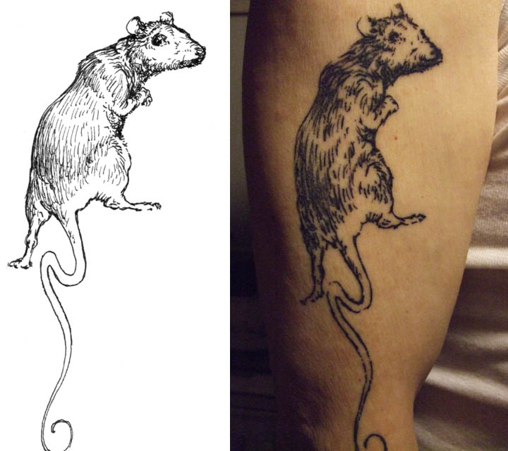 Ha! Yes! I never knew how popular rat tattoos were, but apparently worldwide they are highly sought after, from NY to the Netherlands, people find my blog everyday searching for rat tattoo designs, primarily because of Omar Rayyan's (NC's illustrator) fan tattoo of one of Nightshade City illustrations. It's incredibly cool to have one of your book's characters on someone permanently! I wonder if the guy below donning that awesome tattoo actually read the book or found the illustration online--super cool either way!