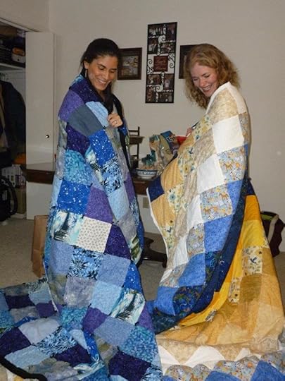 Katrina and me, modeling our “wedding quilts” at my wedding shower.