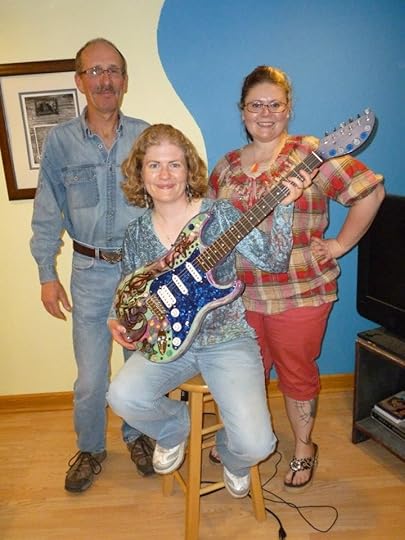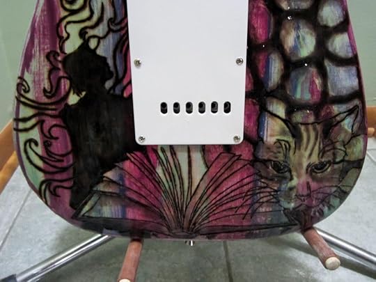 Last night, my dad and my sister presented me with a new guitar they had made as a belated birthday present. My dad did the assembly and staining, and my sister did the woodburned artwork. The photos don’t do it justice, but she took kind of a “collage” approach, including images of many things that are important to my life — my pets, unicorns, books, and on the back, Rapunzel. Even my guitar is telling me there’s no excuse not to get back to writing that thing! (Well, except taking time to write about my guitar. That seems like a good excuse.)