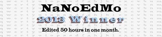Still, I was mostly dismayed (but, admittedly, also relieved), when a glitch in the NaNoEdMo site closed the deadline early — meaning that when I tried to log time at 9 pm CDT, I got a message that said, “NaNoEdMo is closed for 2013. Join us next year!”
