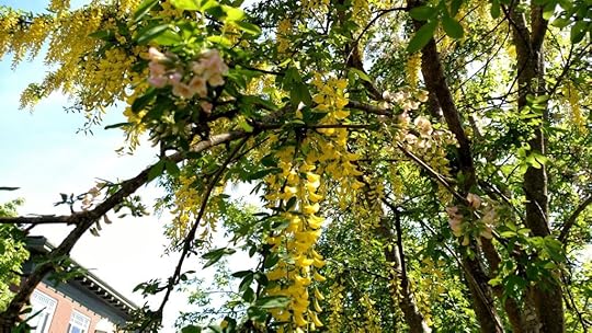 It’s spring in Seattle, and my lovely golden-and-pink-chain tree out front is blooming.