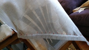 So this is one of the flounces, with the horsehair braid pinned being pinned into the hem.