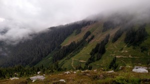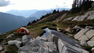 Back on the other side of the ridge was a beautiful small meadow, next to a glacial fed lake, where we decided to camp for the evening.