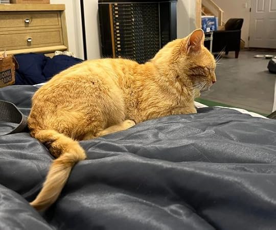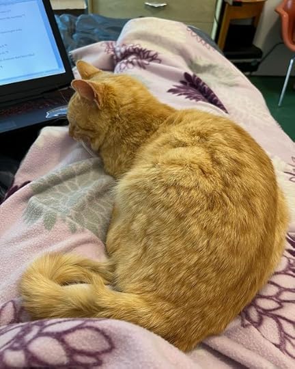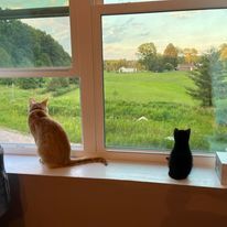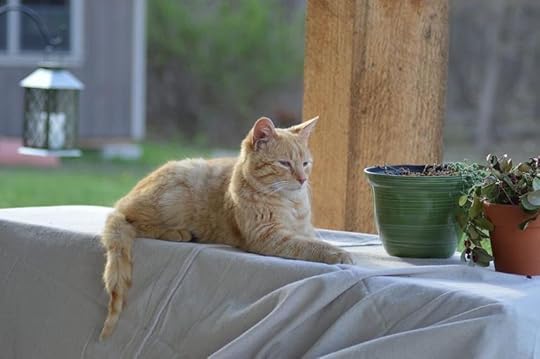 The first visit to the vet determined that Cheddar has a few health issues, all which can be fixed with medication. He’s taking his medicine with no complaints and is a very well-behaved indoor cat now. This makes us think ever more that he was house cat from the start. He’s settling in well, and I am just overjoyed to have a sweet cat to hang out with when I’m at the farm working. I write at the farm most days now.