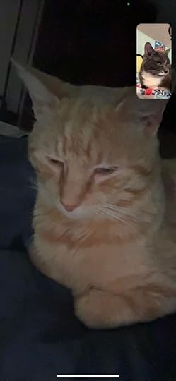 Because Cheeps and Tummy are senior cats and because Cheeps has cancer, Cheddar will never meet the editors in person, but he has FaceTimed with them. Enjoy these photos of our new addition!
