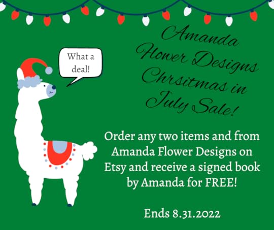 Because life got crazy, I took a few months off of my Etsy Shop, Amanda Flower Designs, but I’m happy to share it’s back. To celebrate, I am having a Christmas in July Special on Etsy. Buy any two items and receive a FREE signed book from my backlist. All backlist titles are published before 2020. After you place your order, I will message you through Etsy with a list of titles to chose from to make sure that you get a book you’d like to read or give to someone as a gift. I’ve added a great collection of new and old favorite bookmarks and bracelets to the shop. Be sure to check them out at https://www.etsy.com/shop/AmandaFlowerDesigns.