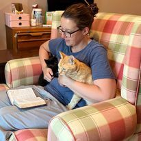 At our farm over the last week there has been a great deal of excitement! We adopted a new cat and he moved into my husband’s recording studio on our farm. He’s a friendly orange tabby who we named Cheddar! The vet guesses that he’s one year old. He just showed up at the farm one day last fall. We fed him and built him an outside house that was even heated to keep him warm through the winter. Overtime, he became more used to us and we decided that he should be an indoor cat at that point.