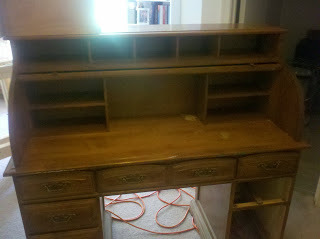I don't know what it is about old stuff, but it gives me a high. I collect antique pens, antique books with signatures from no later than 1910, and now I have a gorgeous, wonderful antique roll top desk in my office with all the marks of being well used.