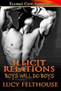 Currently, I only have two M/M publications out there – Ditched and Illicit Relations. Ditched is a military short story that was published a while back, and Illicit Relations is an erotic romance novella that’s bordering on taboo that was just released by Ellora’s Cave.