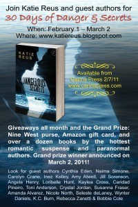 Katie Reus is celebrating her upcoming release (Dangerous Secrets) with Carina Press, and all month she's got some great authors blogging about various aspects of danger & secrets — somehow, I managed to sneak into her list, too, and I'll be posting there Feb. 15. There are going to be assorted contests, and a grand prize, so make Katie's blog a must-visit every day this month!