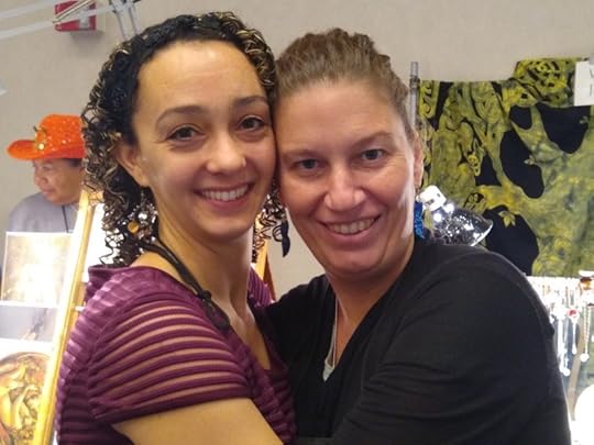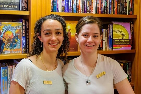 Carrie and me standing in front books by former WOTF winners. We’ll be in there someday!Carrie and I had been in touch via facebook messages for a few months. She’d graciously pointed me in several helpful directions for my website redesign. (You can see Carrie’s lovely author website here.) I had a good feeling about her. It turned out to be exactly correct. Not only is she smart, she’s also kind and in possession of a great sense of humor. And she lent me a pair of pajamas after I forgot to pack mine. True story. She is honestly one of my highlights of my Writers of the Future week.