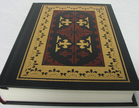 A few people have asked about the hot foil stamping dies our printers, slipcase makers, and traycase makers use to stamp the covers/cases. These are made of copper, aluminum, or a similar material and weigh between one and 25 pounds. These photos don’t show it, but the copper ones are extremely shiny.