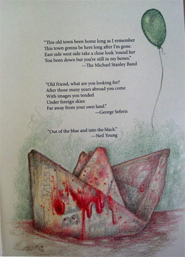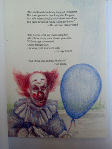 I’ve had the pleasure of working with Erin S. Wells on several projects now, including It: The 25th Anniversary Special Limited Editionby Stephen King and myDueling Mindsanthology among others. Several collectors hired her to remarque their copies of It and she was kind enough to let me share a few samples here on the blog. (A remarque is an original drawing created by an artist directly in the book.)