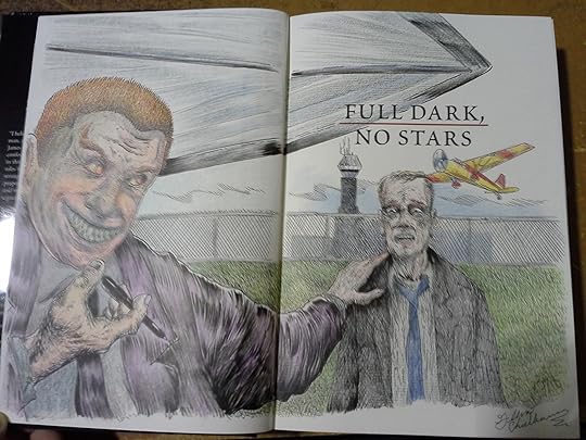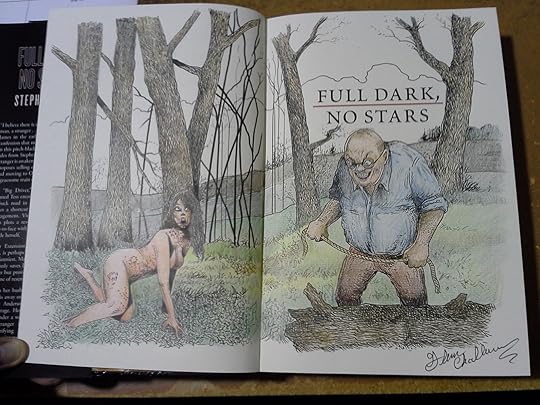 Glenn Chadbourne “remarqued” several copies of the Lettered Edition ofFull Dark, No Stars by Stephen King for collectors. A remarque is an original drawing created by an artist directly in the book. Glenn spent five full days working on these remarques. You can click on each image to see a larger version:
