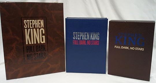 Something very cool is shipping from the Cemetery Dance warehouse this week: the Deluxe Lettered Edition of Full Dark, No Stars by Stephen King. I’ll try to take some formal photos later this week, but here’s a quick shot of the complete set of our editions (Lettered, Limited, and Gift from left to right):