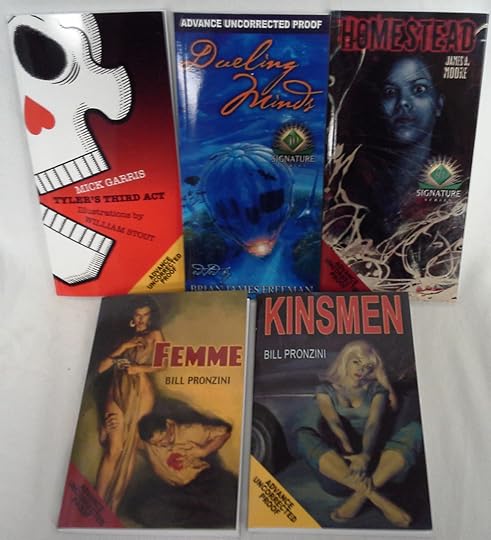 Review copies for a few Cemetery Dance fall releases arrived this week. A review copy is a trade paperback version of a book that is printed early so booksellers and reviewers can read the material in advance. Corrections could still be made to the text, dust jacket, etc, before the book is sent to the printer for the actual hardcover edition.