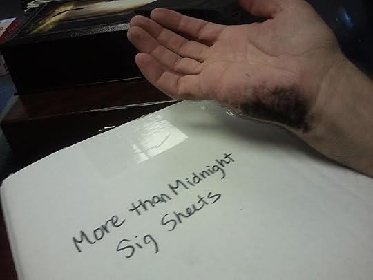 Scenes from the Cemetery Dance office: Signing Signature Sheets
