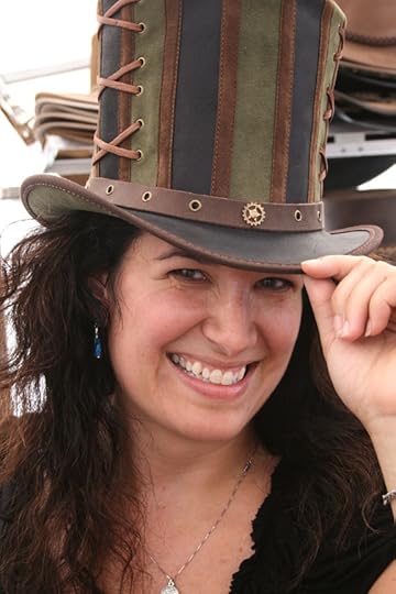 I am a complete sucker for hats. Ask anyone! I have a huge collection of Victorian hats as well as sun hats, formal hats, 80's retro hats, and costume hats so it was no wonder that I tried on a ton of these leather-bound chapeaux at the Head 'N Home booth at the Port Clinton Arts Festival! Corset hats? Cameo hats? Snake hats? Steampunk stove pipes? I'm in haberdasher heaven!