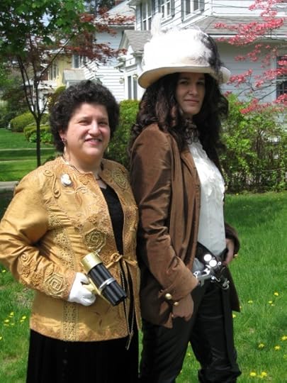 First, let me say "Hats off!" to my sister-in-law who gamely donned borrowed costuming and accepted cameo pins, teeny tiny top hat, and a homemade hand-held gattling in stride when she agreed to come along with me on this last-minute whirlwind exploration of steampunk geekery. And if THAT'S not love, what is?
