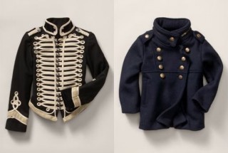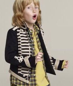 Want a real find? I'd recommend the site, Everything But the Princess. It's pricey as opposed to priceless, but the eye candy is gorgeous! (Unfortunately, I can't gak all the proper images to share so you'll just have to click through or trust me on this!) Start simple with a pink corduroy jacket and leggings or cut straight to the chase with a total outfit you can imagine in The Time That Never Was. Want some military style? How about Stella McCartney's band jacket with big, black boots? Or a great "dirigible crew" outfit in heather gray from Luna Luna Copenhagen?