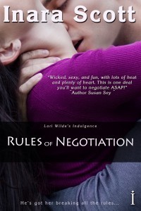 But then Inara hooked up with Entangled Publishing, & began to release her adult romances. (There she is in her glammed-up, I-write-romance author photo. Nice!) And guess who she tapped for a cover quote for her latest, the Rules of Negotiation? I’m thrilled to report it was me! And they put it smack on the front cover, too.