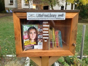 So this library? It’s the most awesome thing ever. It’s like an oversized mailbox you put in your yard and fill up with books. Then anybody passing by gets to take one. Or leave one. Or just stop by your yard to check out the selection & maybe admire your garden.