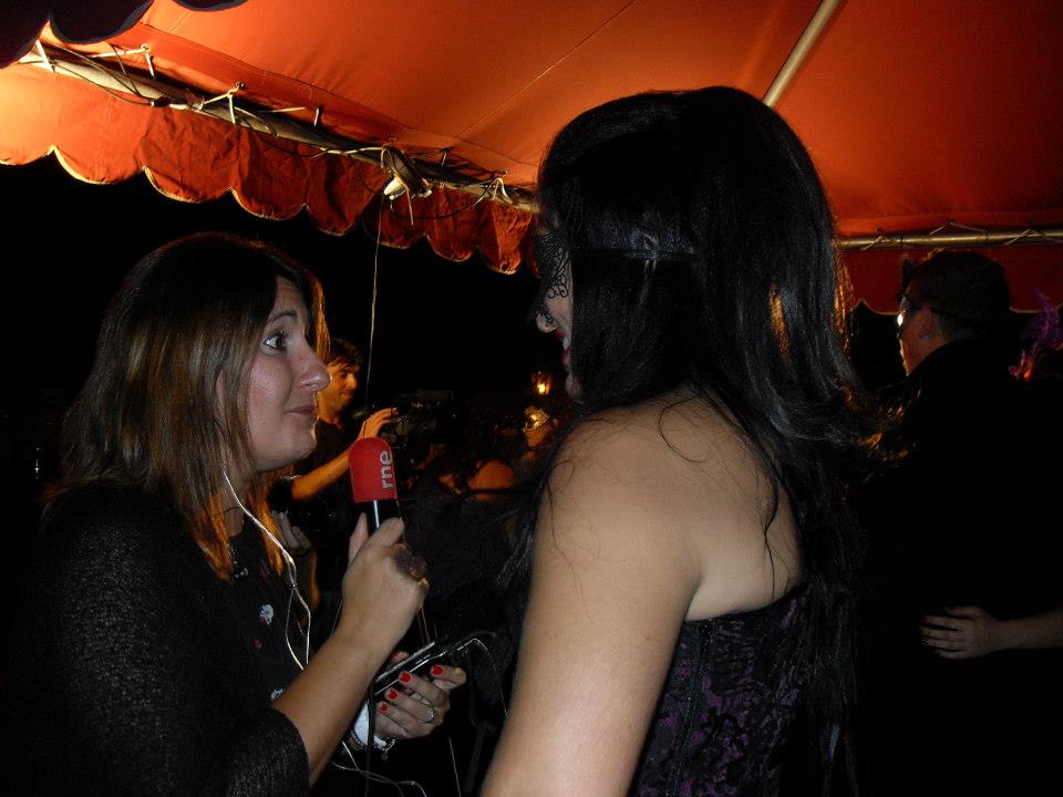 Entramos y más besos y abrazos. Se me salta un colmillo. Continúo con la gota gorda pensando: ahora me pongo a hablar y soy la primera vaniria cuñá de la historia, y la radio a lo lejos y el photocall esperando. Continúo toda digna. Más besos y abrazos. Se me salta el otro. Tengo los dos colmillos sueltos en la boca. Asunto resuelto. Me los saco como si fueran un par de chicles y los tiro. Llego al photocall en un lío de flashes y locura. El montaje que se hará con las fotos y la "sábana verde" (no sé si tiene otro nombre más técnico) de detrás os dejará sin palabras.