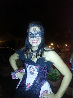 Es una MASCARADA. ¿Eso qué quiere decir? Que hay que ir, además de con las lentillas de colores, los colmillos y el nudo perenne en vuestro cuerpo, con una máscara o antifaz, un corsé y una falda corta o larga, como más os guste.