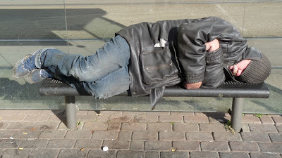 Homeless sleeping at a bus stop: commons.wikipedia.orgThere are millions of people across this great land of ours that are pre-homeless. Please say hello to Bob and Tracey Slider and their son, Jake. They are a composite of so many American families that cover our land from ‘sea to shining sea’. They are among the millions of unnoticed, hardworking, Americans, locked into survival mode while trying their best to do the “right thing” every day. What happens when they are confronted with circumstances which place them on a road heading downward where the horizon up ahead turns homeless? Can they make the turn and begin heading uphill? What choices will they make? What will determine their success or failure?