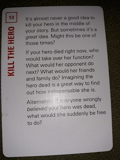 ***John August designed these cards to help writers fix plot holes, spice up stock characters and rethink your themes. They, of course, do not guarantee you’ll get published or that you’ll become the next J.K. Rowling, and of course they are only a tool to help you think outside the box. I make no monetary gain with them nor do I expect anything in return. I do not own the contents in these cards. If you're interested in them, here's the amazon link: https://www.amazon.com/Writer-Emergency-Pack/dp/B00R6ZLIOY/ref=sr_1_2?ie=UTF8&qid=1502046610&sr=8-2&keywords=john+august