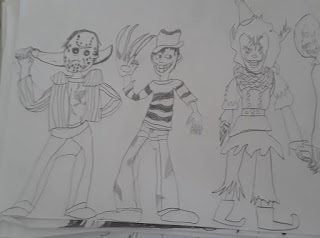 True. They aren’t. But to us they add to the wonderfully ghoulish feel of decorations, atmosphere, and excitement that culminates in a night of tricks or treat. I usually have to make my son’s costume because he always picks something that isn’t store bought. This year he’s Sammy Lawrence from Bendy & the Ink Machine. Don’t know what that is? Here's a pic of him: