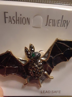 To celebrate Halloween, and to thank you for visiting and reading my ramblings, I would like to give away a cute little bat pin! He's really cool. with black little gems in the body and a green gem for the eye. All you have to do to win is leave a comment on WHAT SCARES YOU? ...and an email address to contact you if your name is picked (by my wonderful helper Hadrian, aka son)! I promise not to spam you!! :-)