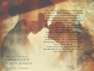 Bartholomew Addison Jenkins’ ghost has been invisibly watching Alma for months. When he materializes one night, Alma discovers Bart—as he likes to be called--has talents she couldn’t have imagined…and a horrifying past.