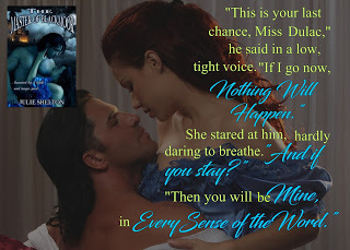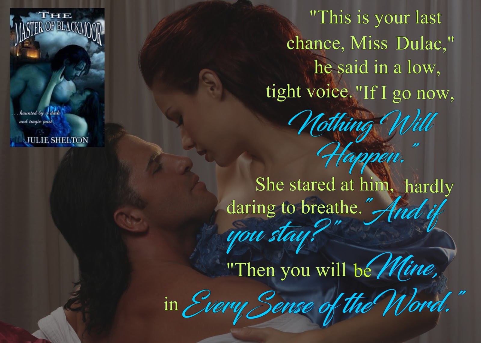 “Julie Shelton has brought the Regency era to life with this intense scintillating story of a governess Danielle Dulac and the Master of Blackmoor Lord Anthony. A man living under a curse, a curse that has already cost him the lives of those he loved. His tortured soul has been lingering, waiting for the curse to finish him off. Until the day he meets Danielle Dulac A woman lost in a blizzard looking for refuge. When he first meets her he's cold, as cold as the storm raging outside. But when he really sees her, seeing the inner person his soul starts to yearn, wanting to consume her. But she is not safe with him. The curse will take her from him...so he must send her away...