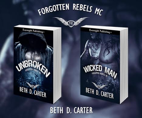 Do you like Bikers?Badass motorcycle riders with tats and the attitude to go with it?Then you might like The Forgotten Rebels. They’re a motorcycle club who requires its members to do a stint in the military before full membership is given. In Unbroken (book 1), the President’s sister comes live with the club when her family is gunned down by a psycho stalker. In Wicked Man (book 2), the President, Wick, meets up with his old flame even though she’s still on the run.