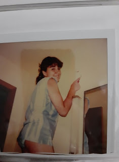 Why yes! I've done a home renovation plus I watch them all the time on HGTV. I actually like learning about home renovations. Back when I was in high school my mother decided to redo our bathroom. I lived in a three bedroom, one bathroom house. We didn't actually change the layout of the bathroom, but we did repaint and add shelves. Here's a pic of me scraping the old (probably lead) paint off the walls: