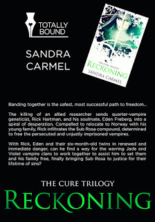 I originally thought I’d prefer stand-alone books, but what you hope for and what actually happens don’t always align. In the case of The Cure trilogy, it follows the two main characters, Richard Hall and Eva Fjelstad all the way through the series. However, I use multiple points of view, so readers also get to know several key characters. The Cure has an epic, erotic, paranormal saga type feel. It spans several time periods and introduces a range of characters. But never fear – it all comes together in book three, Reckoning.