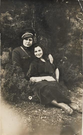 Geçen yüzyılın ilk yarısında fotoğraf stüdyoları tiyatrosahnesine benziyordu: kostümler, fonda doğa ya da şehir manzaraları, yapayışıklar… Bu karedeyse doğa fonu gerçek; belki de “oyun” dışarı taşmış. İkikadının birbirine yakınlığı (ister dostluk ister aşk olsun) bu “oyun”un samimiyanını koruyor. Fotoğraf hem bir şaka hem bir itiraf gibi duruyor.