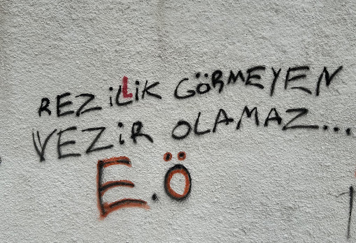Geçtiğimiz hafta sonu, mahalledeki pazar yerinderastladığım yazılamayı paylaşıyorum: “Rezillik görmeyen vezir olamaz.”