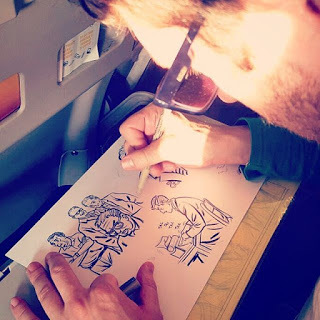 El avión es un sitio tan bueno como otro cualquiera para dibujar, ¿no creéis?