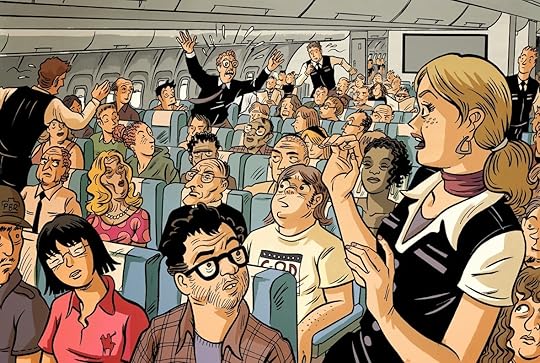 Estoy creándome un portafolio de ilustración comercial y, para ello, he decidido reciclar algunas de las viñetas de mi 'Actor Aspirante' que pueden funcionar como ilustraciones. Aquí una doble página coloreada para la ocasión. Podría quizás ilustrar un artículo sobre el miedo a volar, ¿no creéis?
