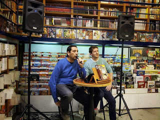 La clave fue la implicación de Nando, el librero, que hizo todo lo que estuvo en su mano para que el evento saliera bien. Lo anunció con suficiente antelación y, a medida que se acercaba el día, fue dando un goteo de información variada en su grupo de Facebook y en su blog: entrevistas con el autor, detalles del libro, imágenes, reseñas, etc... Además, se lo dijo personalmente a sus clientes más habituales y a sus amigos, imprimió un cartel en un lugar visible... Al verlo interesado, traté de aportar mi granito de arena ofreciéndole una página original para que la sorteara entre los compradores del álbum. Esta implicación tuvo su recompensa. La librería se llenó y se vendieron bastantes libros.