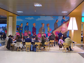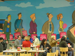Terminaré con una anécdota personal. Durante varios años, en la cafetería del aeropuerto de Valencia -al lado de "llegadas"-, había un mural mío. Aquí lo tenéis: