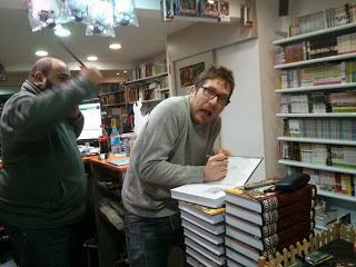 Como ya he comentado hasta la saciedad, he hecho un pequeño tour por el norte de España. En mi primera parada, Santander, tuve el placer de firmar un montón de libros como atestigua la foto.